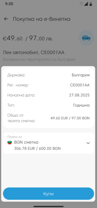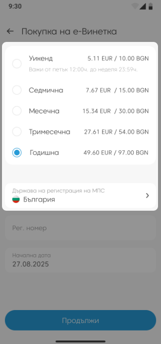 електронна винетка за твоето пътуване из България директно през телефона. Вземи я по всяко време, където и да си, дори когато си в движение.