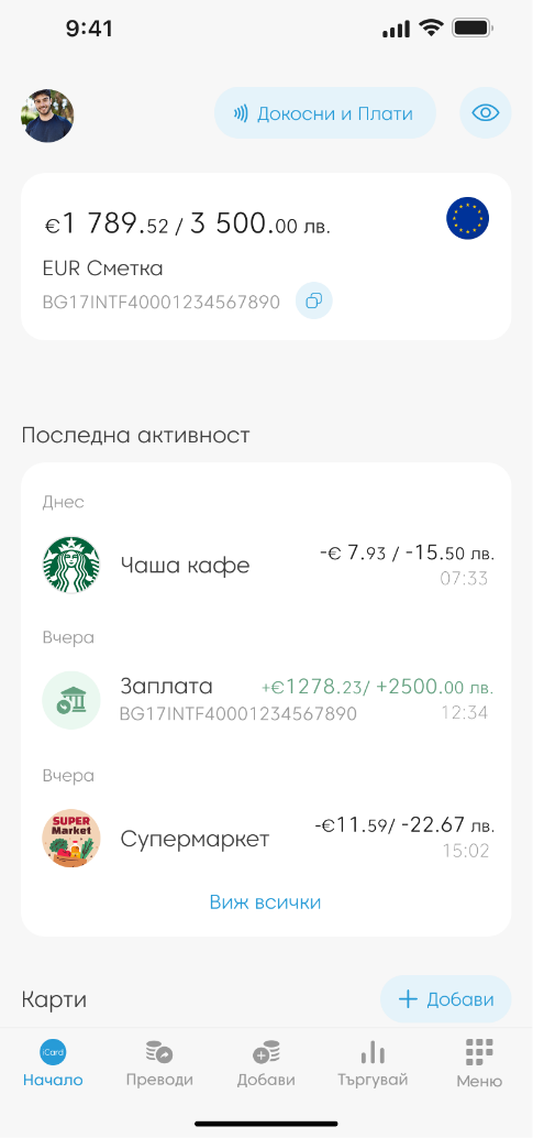 Виж повечеТелефонът ти и дигиталният портфейл iCard се съчетават отлично. Опитай мобилните плащания с карта Visa и iCard Pay, Google PayTM, Apple Pay или Garmin PayTM и вземи максимума от тази печеливша комбинация.