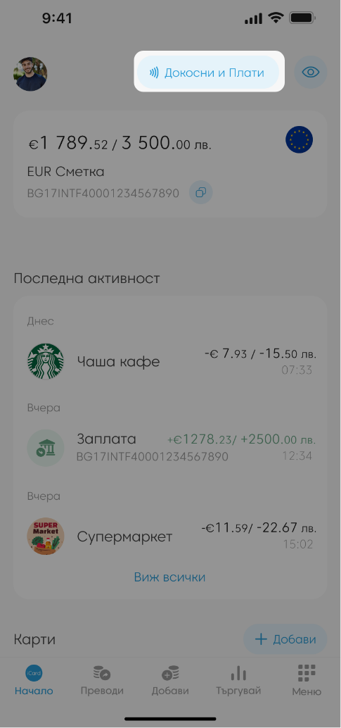 Разплащателна сметка, две опции за безконтактна дебитна карта и пълен финансов контрол от телефона ти.