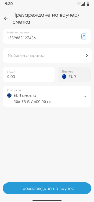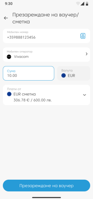 Докосни се до свободата на предплатените мобилни ваучери. Без обвързване с договор – можеш да предплатиш мобилни услуги за себе си или да изненадаш свой приятел. Сумата е по твой избор. Зареждай винаги, когато имаш нужда, директно през дигиталния портфейл.