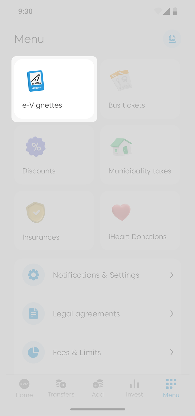 Open the iCard app, select “Menu”,
