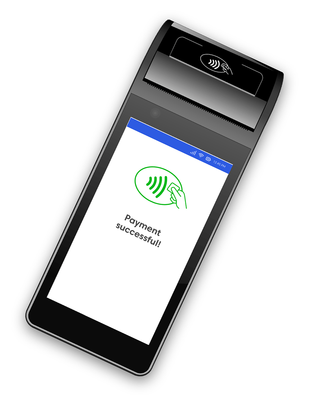 Hold the device near a POS terminal until a check mark appears on the screen.