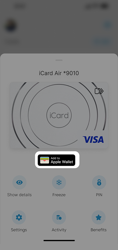 • Add one of your Visa cards issued by iCard to Apple Wallet and set it as your default card.