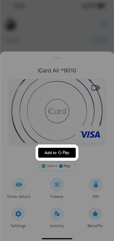 Add one of your Visa cards issued by iCard to Google Pay and set it as your default card.