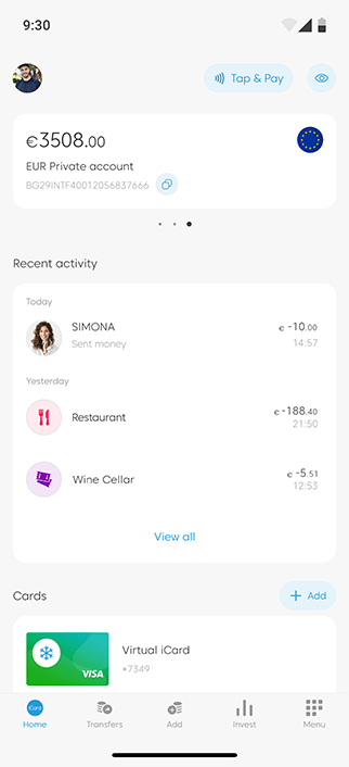 You can add all your physical and virtual Visa cards from iCard to your Garmin Pay for easy access. No need to look for your wallet and phone. Pay with your smartwatch in one swift movement, wherever you are.