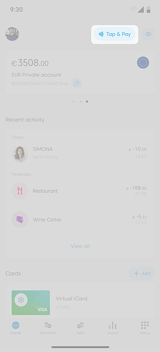 Tap on the “Tap and Pay” button (available on Android) above your account and enter the code you use to unlock your device.