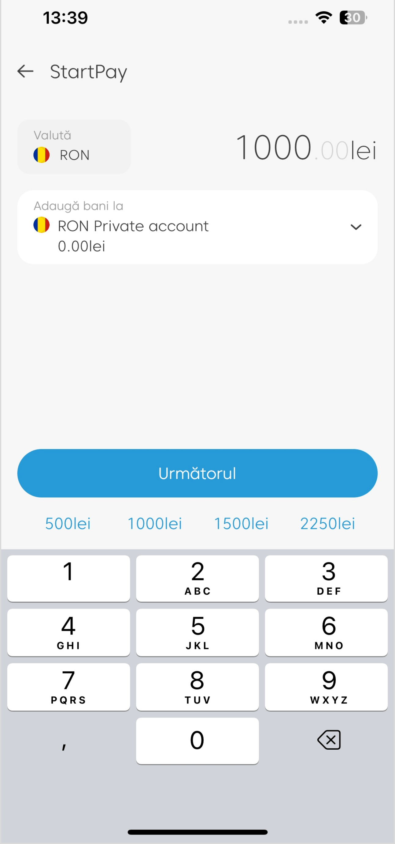 Suma minimă de alimentare este de 10 RON. Suma maximă este de 5.000 RON per tranzacție de alimentare, aceasta reprezentând și limita zilnică.