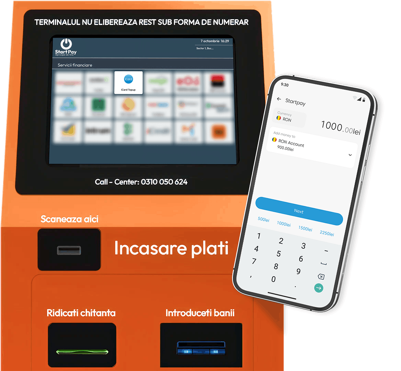 Terminalele StartPay acceptă doar bancnote, în toate denominațiile monedei RON.