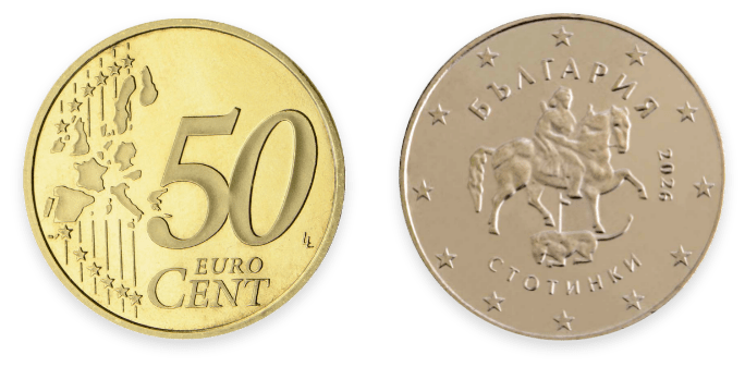 * Източник на изображенията на общата страна на евромонетите: ЕЦБ; Източник на изображенията на националната страната на евромонетите: БНБ.